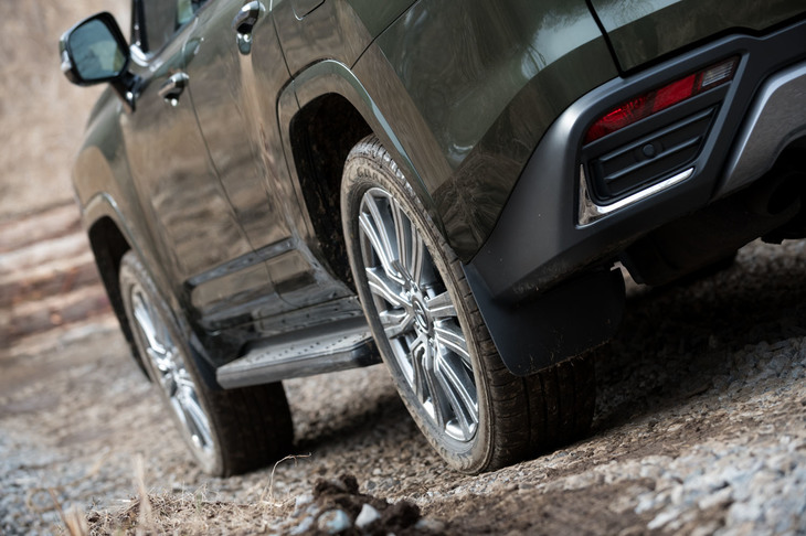 7/36足もとの仕様は全4種類。ベースグレードのタイヤサイズは265/55R20が標準だが、試乗車にはオプションの22インチアルミホイールと265/50R22サイズのタイヤが装着されていた。