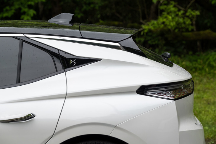 2/275ドアハッチバックとコンパクトSUVを融合したようなスタイリングが特徴の「DS 4」。ディテールでは、シャープなプレスラインやきらびやかな灯火類の意匠などが目を引く。