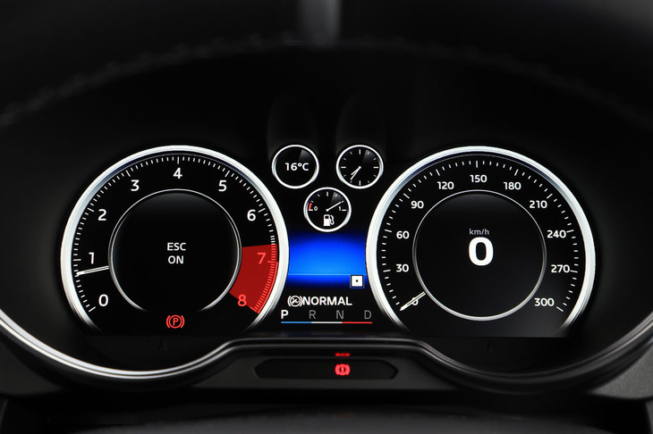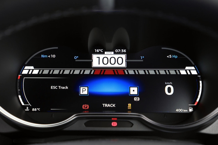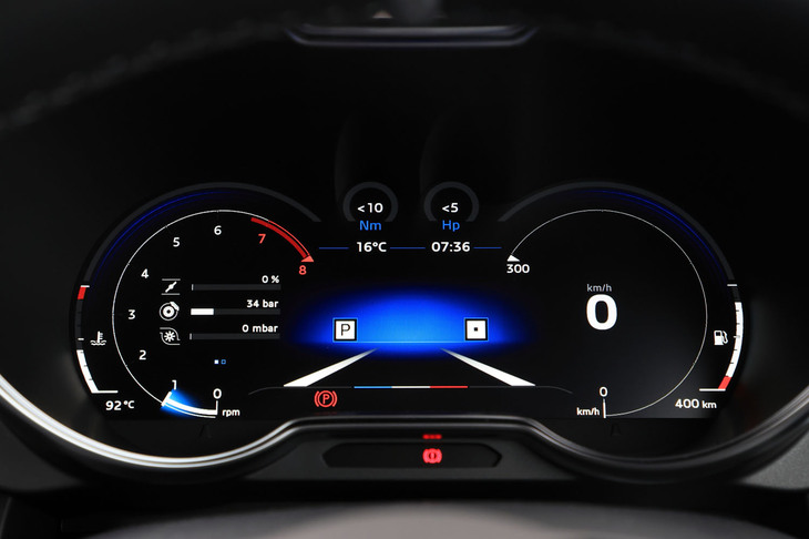 9/70車速やエンジン回転数などの走行情報は、フルカラーのTFT液晶メーターに表示。走行距離や燃費、ブースト圧、アクセル開度なども確認できる。