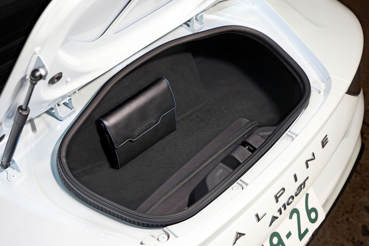14/70本格的なライトウェイト/ミドシップのスポーツカーでありながら、普段使いできる実用性を有するところも「A110」の魅力。車体の前後には2つのトランクルームを備え、ちょっとした旅行の荷物程度なら、難なく積み込める。