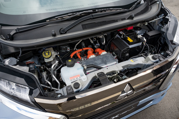 16/22荷室の仕様もガソリン車の「eKクロス」とほぼ共通。後席には前後スライドおよび左右分割可倒機構が備わり、床下には充電ケーブルなどの収納スペースも設けられている。