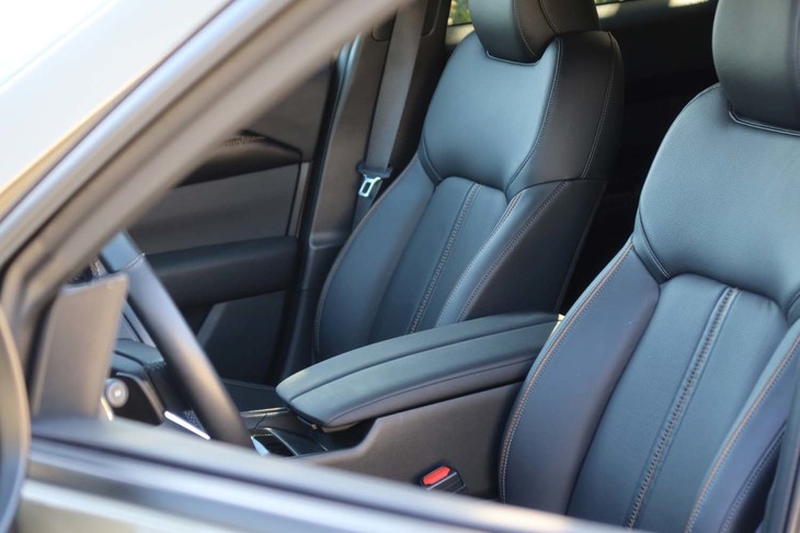 9/47ターボ車のシートは本革仕立て。試乗した「プレミアムプラスパッケージ」グレードのみ、後席にもシートヒーターが備わる。