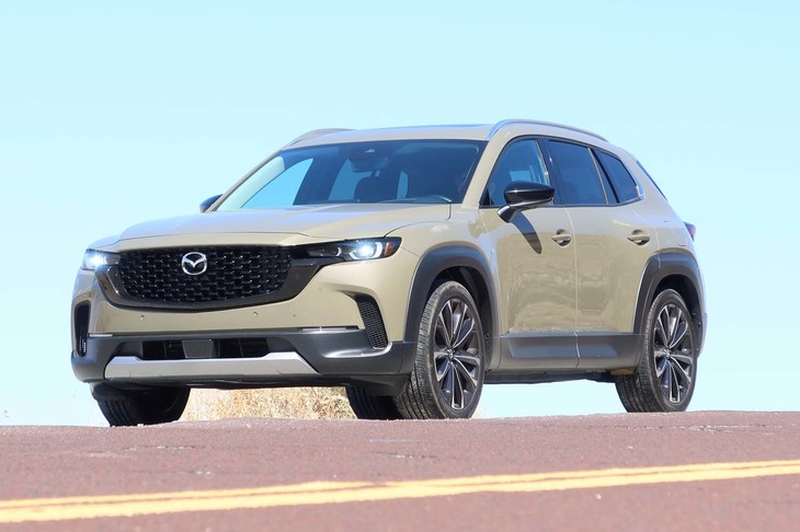 11/47低・中回転域での力強い走りが印象的な「CX-50 2.5T」。最高速は時速142マイル(228.5km/h)と公表されている。