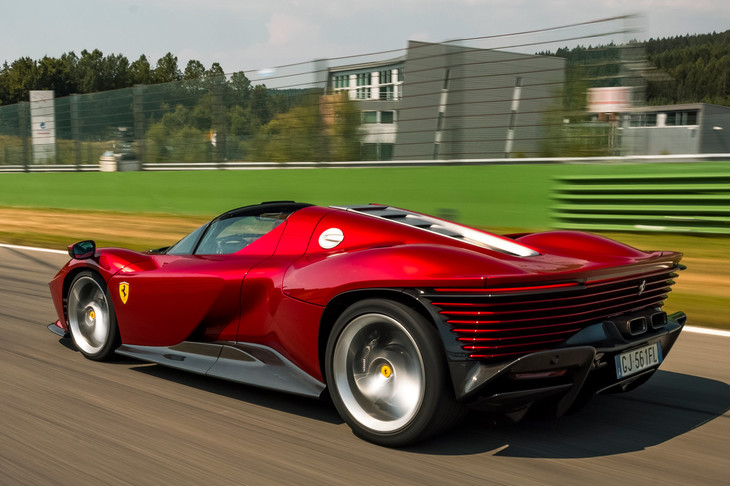2/232021年11月に世界初公開された「フェラーリ・デイトナSP3」。往年のアイコニックなモデルをオマージュしたデザインをまとう「イーコナ」シリーズの、第3弾のモデルにあたる。
