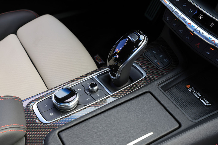 8/105センターコンソールに配されたシフトセレクター。トランスミッションは10段ATで、100km/h巡行時のエンジン回転数は1300-1400pmに抑えられている。