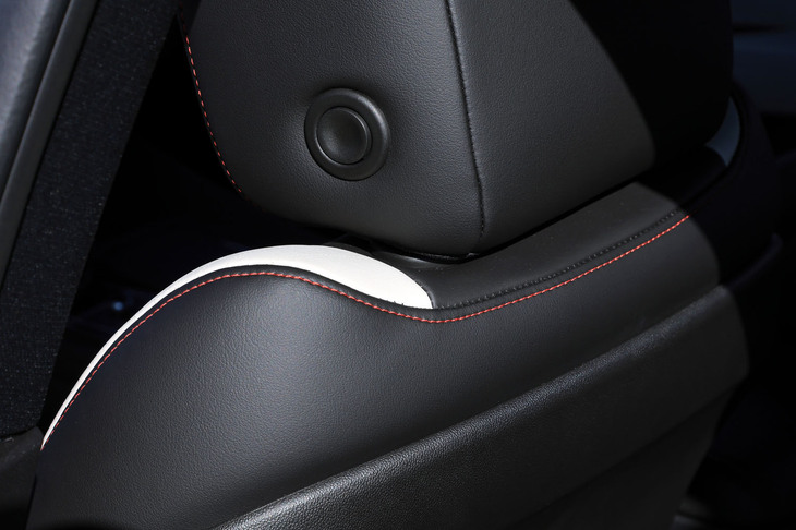 15/105手触りのよい本革と丹念なステッチが上質感をただよわせるシート。運転席は、各種予防安全機能の警告をドライバーに振動で知らせる「セーフティーアラートシート」となっている。