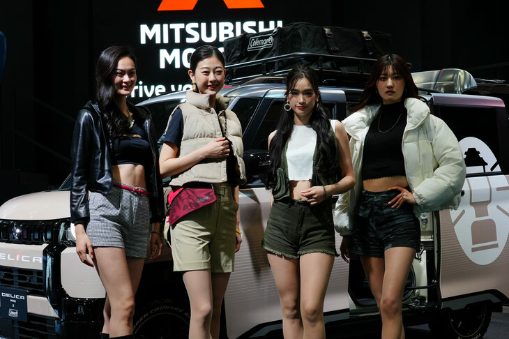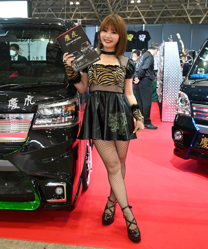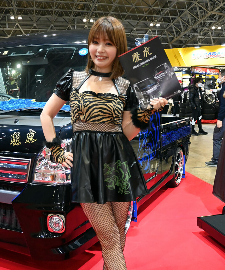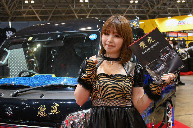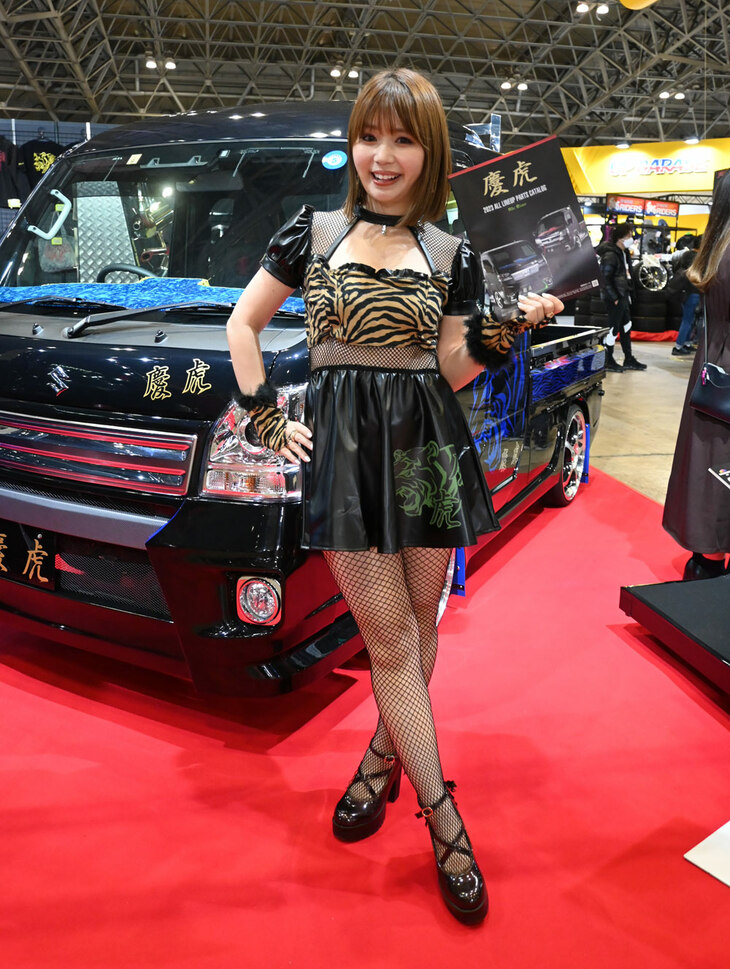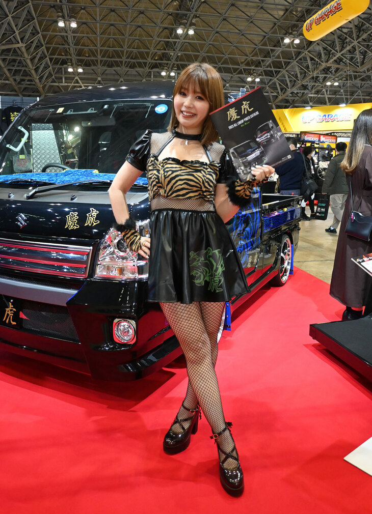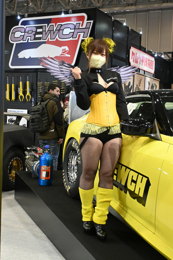 2023.01.14 画像・写真年明け恒例のイベント、チューニングカーやドレスアップカーの祭典「東京オートサロン2023」。コンパニオン名鑑では、各ブースでクルマを引き立てるコンパニオンの姿を写真で紹介する。こちらは、西ホールの三菱自動車、YOKOHAMA、kei Zoneから。