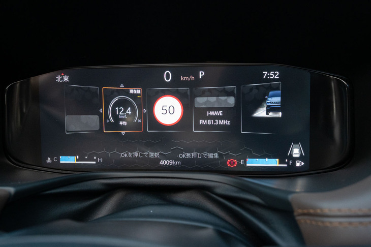 11/21センターコンソールに配されたレバー式のシフトセレクター。トランスミッションは9段ATで、通常は2速発進。「4WD LOW」に入れると1速で発進する。100km/h巡航時のエンジン回転数は、9速で1500rpmを少し超える程度だ。