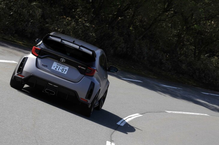 10/25エンジンスタートの瞬間から、やる気に満ちたサウンドをとどろかせる「TOM'S GRヤリス」。厳しい騒音規制が課せられている日本車としては、かなり勇ましい部類だ。