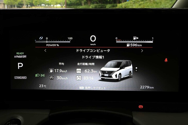 10/19パワーユニットは1.4リッターガソリンエンジンを発電に用いるシリーズハイブリッド。WLTCモードで18.4~20.6km/リッターという燃費性能は、「ホンダ・ステップワゴン」のハイブリッド車とほぼ同等、「トヨタ・ノア/ヴォクシー」のそれには一歩譲るといったところだ。