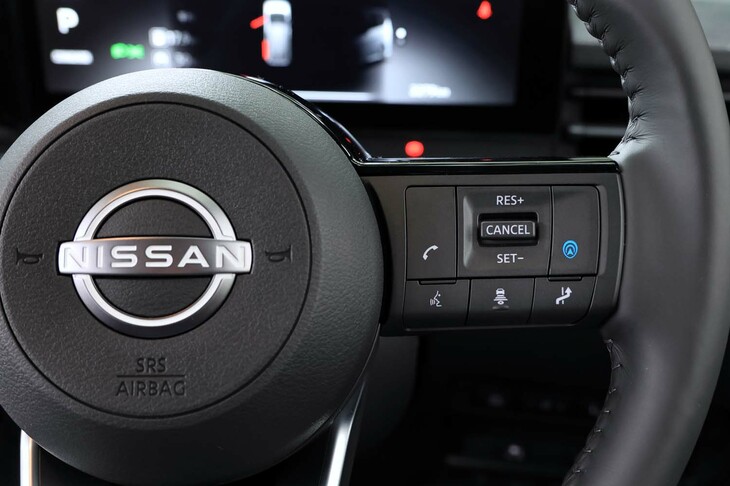 11/19水色のアイコンが目を引く「e-Pedal Step」のスイッチ。この機能をオンにすると回生ブレーキが強まり、アクセルペダルの踏み加減だけでほとんどの加速・減速操作が可能となる。ただし、かつての「e-Pedal」とは異なり、極低速まで減速すると、そのまま停車するのではなくクリープ走行状態に入る。停⾞時には必ずブレーキを踏む必要があるのだ。