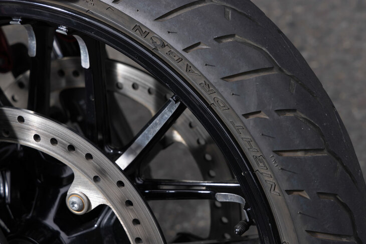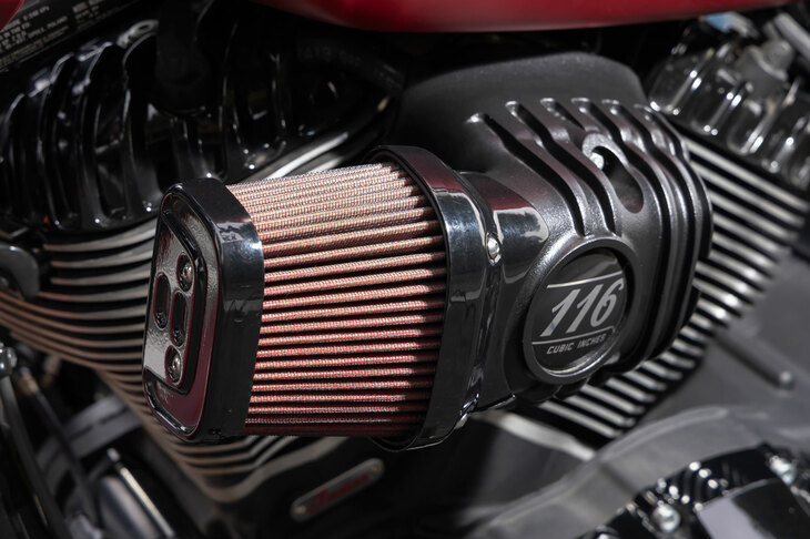 12/521890ccもの排気量を持つ空冷Vツインエンジン「サンダーストローク116」。最大トルク162N・mという膂力(りょりょく)はもちろん、OHVならではの丸いヘッドまわりや、細かな冷却フィンが施されたシリンダーなど、その美しさも見どころだ。