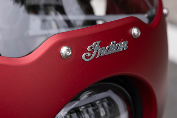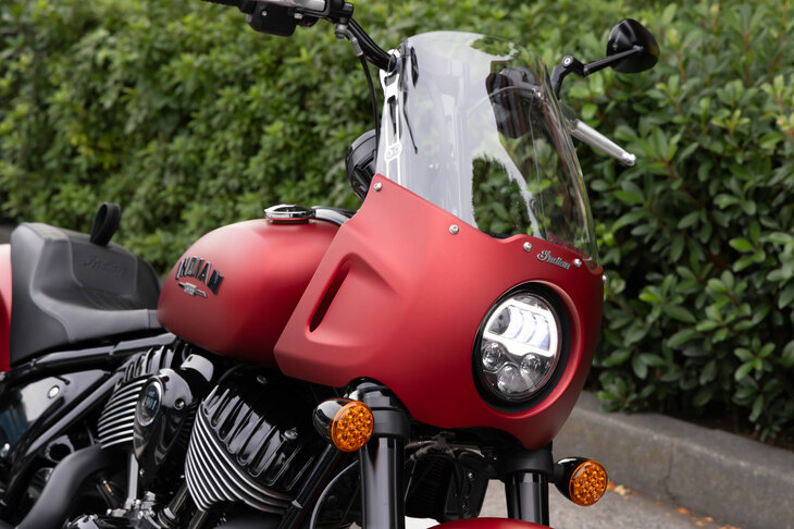 7/52「スポーツチーフ」の特徴であるクオーターフェアリング。ヘッドランプは今日のインディアンではおなじみのフルLED式だ。