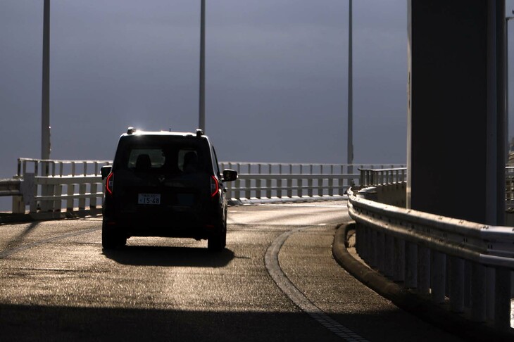 11/56渋滞を避け、早朝のうちに東京を出発。意外なことだが、“プロのギア”を想起させる「カングー ヴァリエテ」のコーディネートは、都市部の景観にもしっかり映えていた。