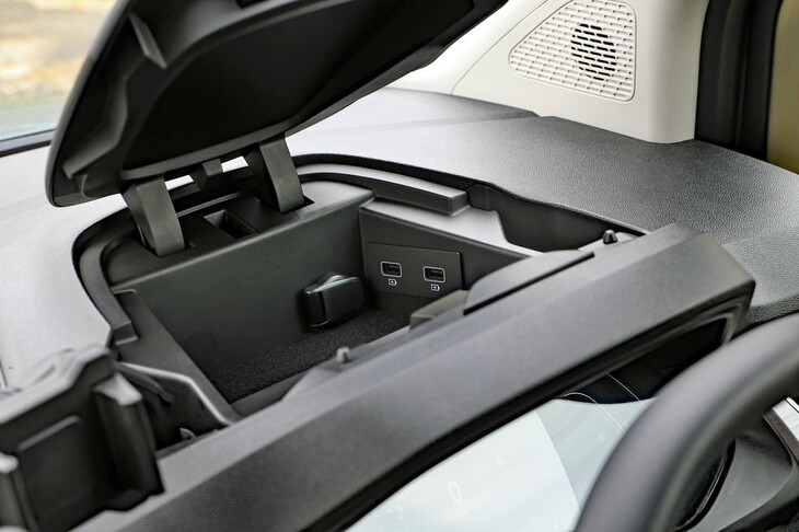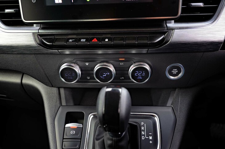 8/56「カングー ヴァリエテ」のセンターコンソール。前方の収納スペースには、携帯端末のワイヤレスチャージャー(非接触充電機能)が装備される。