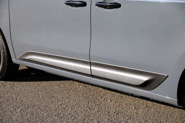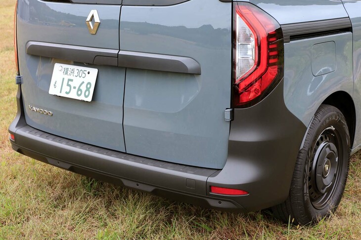 6/56「カングー ヴァリエテ」の特徴である、樹脂製の黒いバンパーと「グリ アーバン」のボディーカラー。この色が使われるのは、新型カングーでは今のところヴァリエテだけだ。
