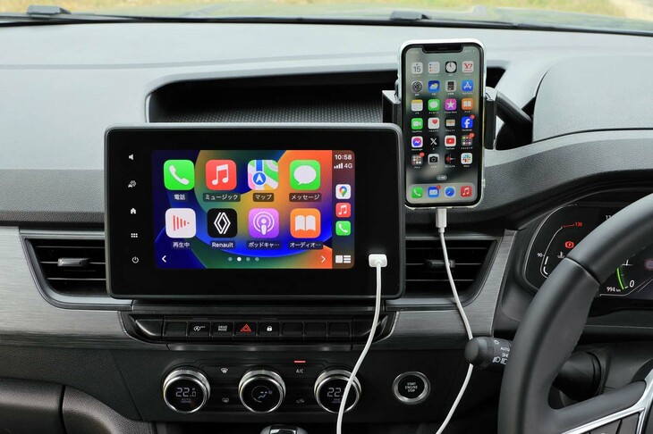 16/56センターディスプレイはApple CarPlayやAndroid Autoといったスマートフォンのミラーリング機能に対応。ナビアプリを使えば、カーナビゲーションシステムとしても利用できる。