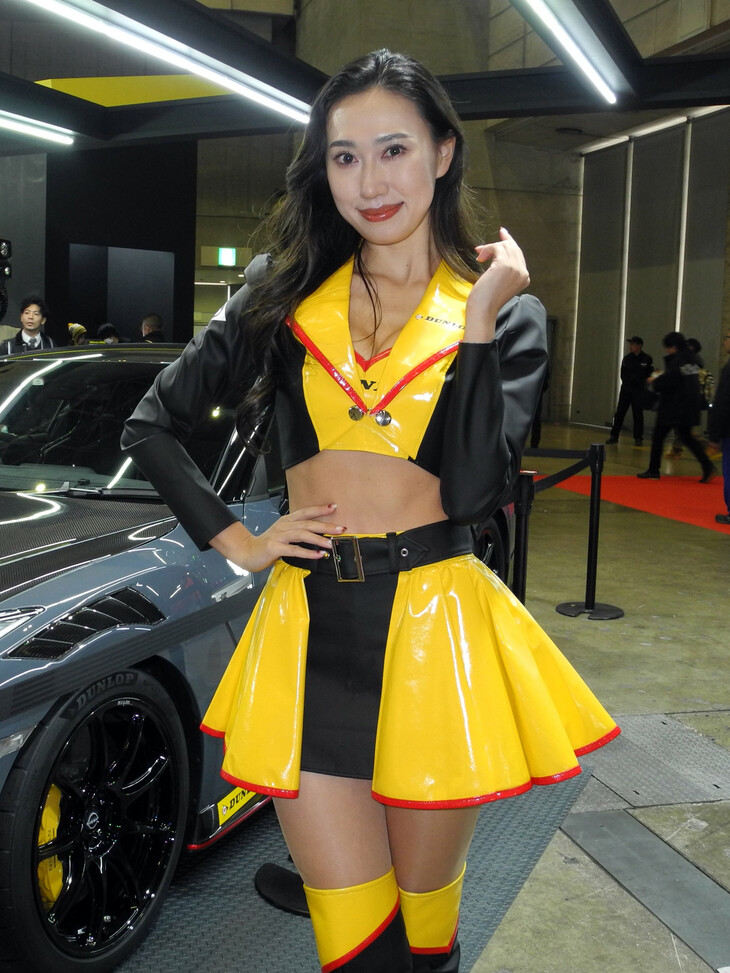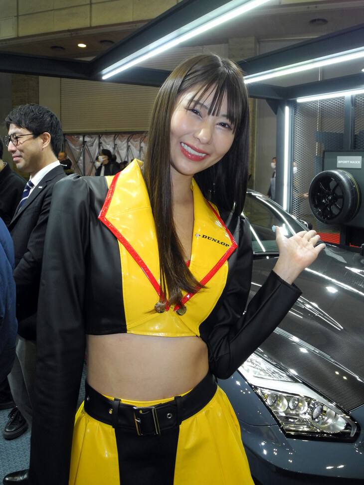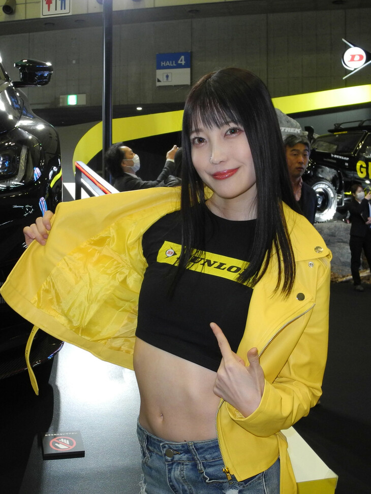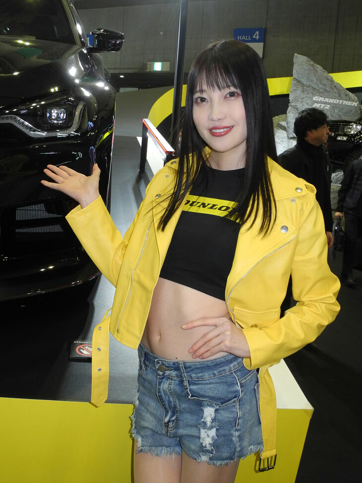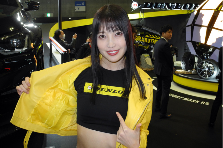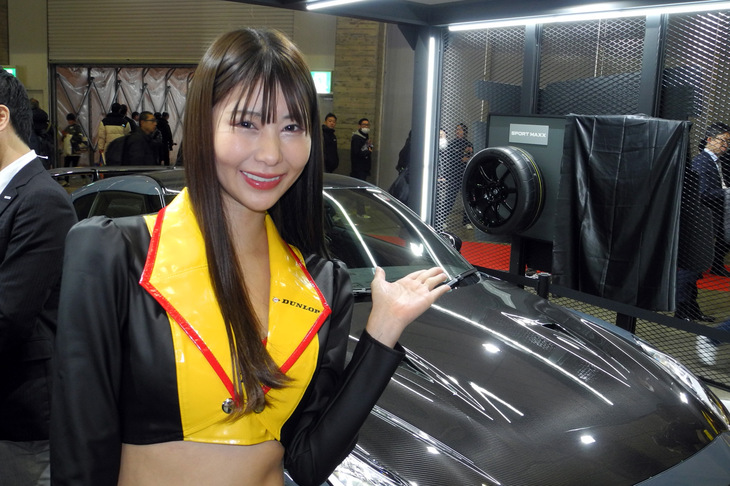 2024.01.13 画像・写真年明け恒例のイベント、チューニングカーやドレスアップカーの祭典「東京オートサロン2024」。コンパニオン名鑑では、各ブースでクルマを引き立てるコンパニオンの姿を写真で紹介する。こちらは中ホールのダンロップブースから。