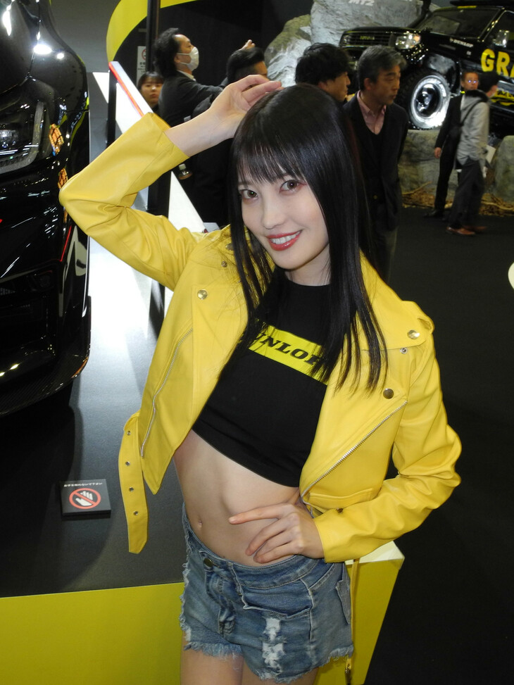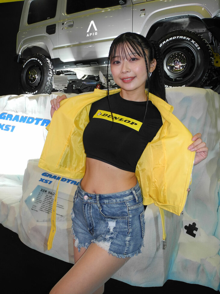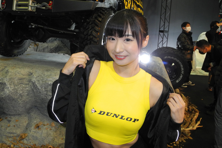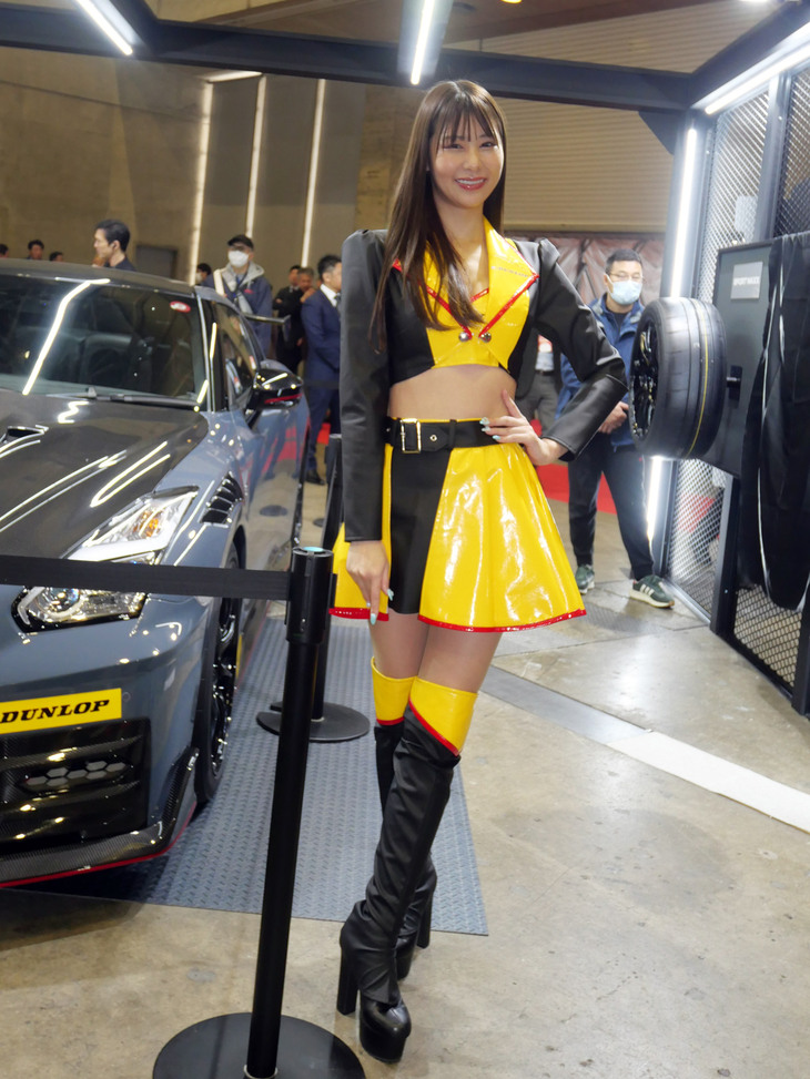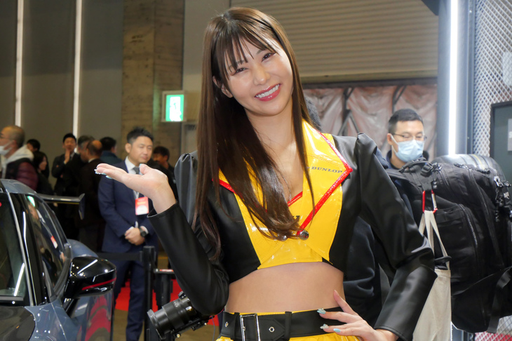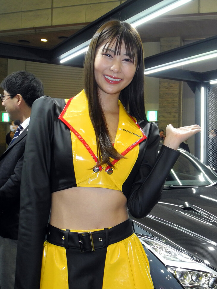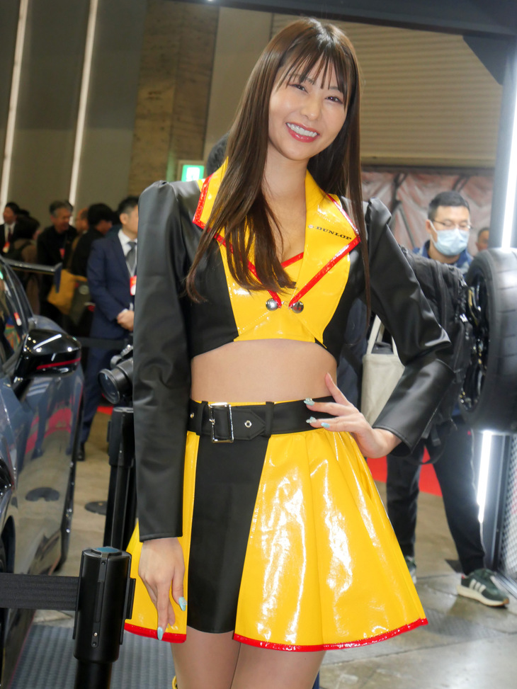 2024.01.13 画像・写真年明け恒例のイベント、チューニングカーやドレスアップカーの祭典「東京オートサロン2024」。コンパニオン名鑑では、各ブースでクルマを引き立てるコンパニオンの姿を写真で紹介する。こちらは中ホールのダンロップブースから。