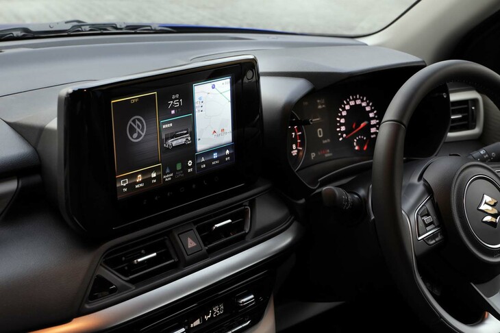 8/23スズキとしてはこれが初採用となる9インチのディスプレイオーディオ。通信サービス「スズキコネクト」に対応したり、USBポート(Type-A/Type-C)に加えてオプションでワイヤレス充電器(スズキ初)を用意したりと、このあたりの機能・装備も劇的に強化された。