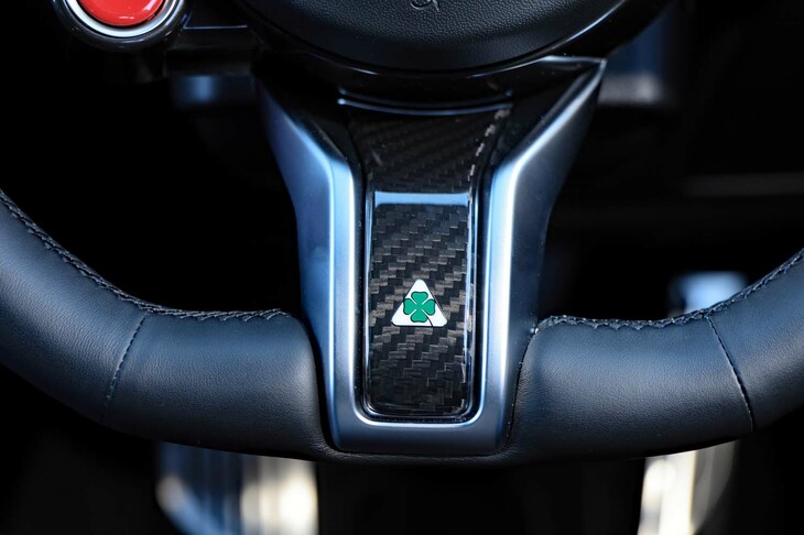 4/18黒を基調としたシックでスポーティーなインテリア。ダッシュボードから突き出たメーターカウルなどに、往年のアルファ・ロメオのモチーフが見て取れる。