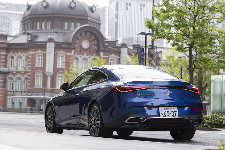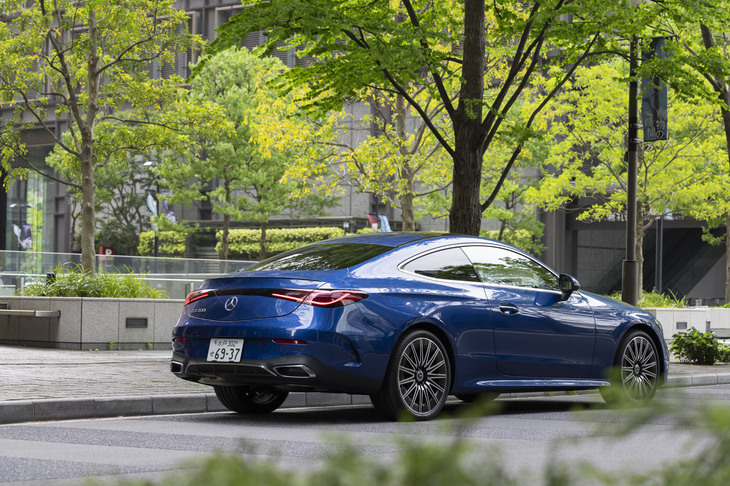 16/28斜め後ろからの眺めが特に魅力的な「CLE 200 クーペ スポーツ」。同モデルには、「Cクラス」や「Eクラス」、「Sクラス」と同じくエンジン縦置き用の「MRA II」プラットフォームが採用されている。