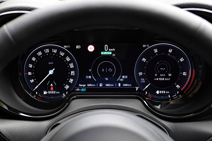 12/24ドライブモードが「N」の状態では、「トナーレ」は積極的にEV走行を行い、バッテリー残量が一定以下となるとハイブリッド走行主体に移行する。