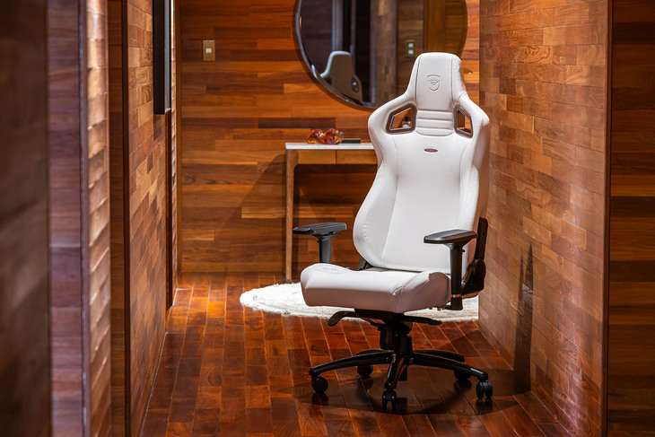 12/28スタイリッシュなホワイトの「エピック ホワイトエディション」は、体をしっかりと包み込むレーシングスタイルのデザインと、ホワイトのカラー専用に開発された高機能レザー表皮「ハイテクビニールレザー」の採用が特徴。表皮はミクロな通気孔によって透湿性・通気性が高く、長時間座っても蒸れやベタつきが少ないという長所を持つ。