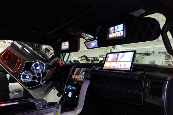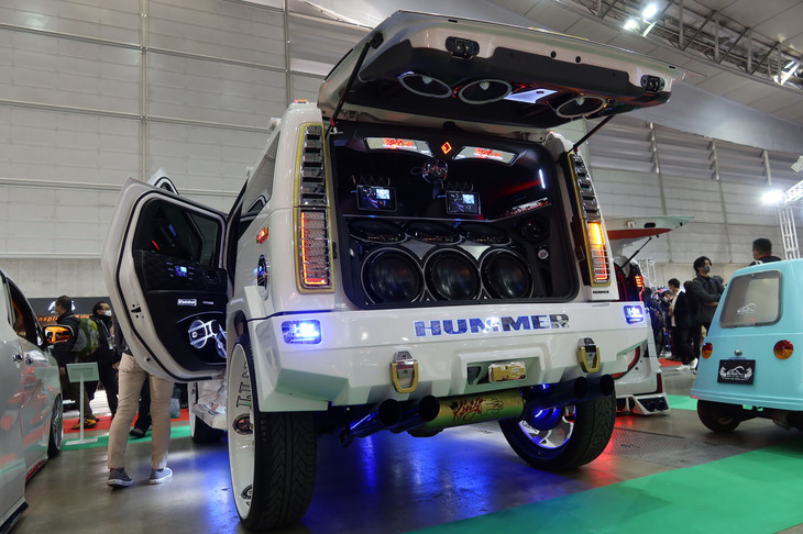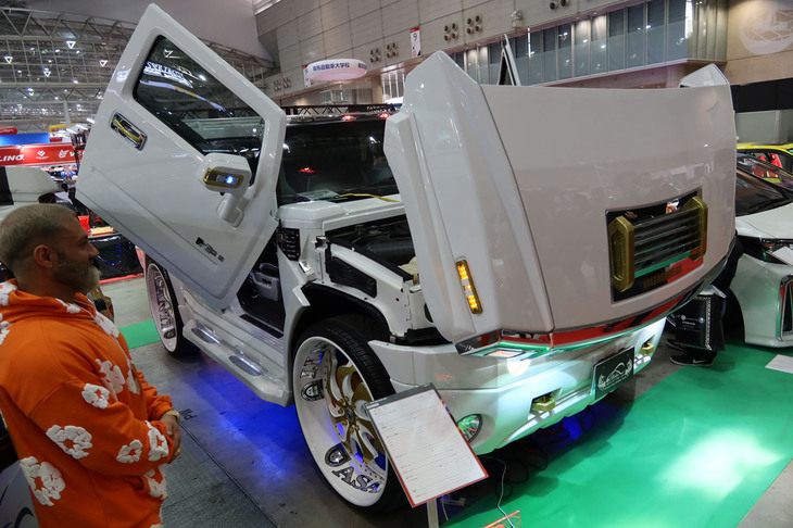 2025.01.11 画像・写真話題の「ジムニー5ドア」があるかと思えば、32インチホイールの「ハマー」や超シャコタンの「アルファード」も! これぞオートサロンというド派手なカスタマイズカーを写真で紹介する。