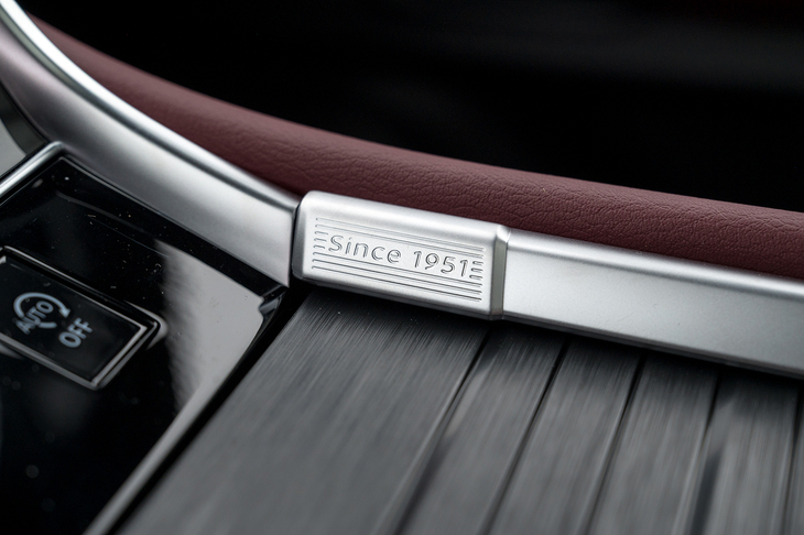 7/21ダッシュボードは14.3インチのディスプレイを2つ並べた豪華なしつらえだ。センタートンネルの幅は30cm近くある。