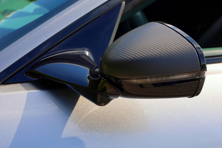 4/23上質なセミアニリンレザーがふんだんに使われたインテリア。細部までカスタマイズが可能なのはエキゾチックカーのお約束で、試乗車にはカーボンやサテンクロームの装飾が施されていた。