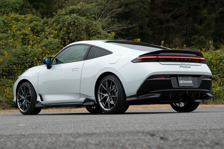 2/34無限の用品がフル装備された新型「ホンダ・プレリュード」。前後のスポイラーやリアディフューザーなどの空力パーツ(開発中)はいずれもカーボン製だ。