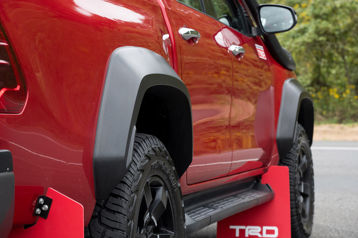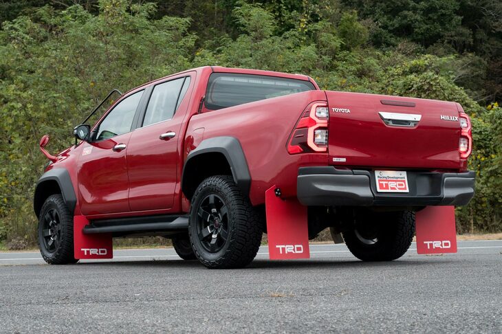 12/34現在開発中のワイドトレッドキットが装着された「トヨタ・ハイラックス」。「Z」グレードおよび特別仕様車「Z“レボロッコエディション”」に対応した用品になる予定だ。