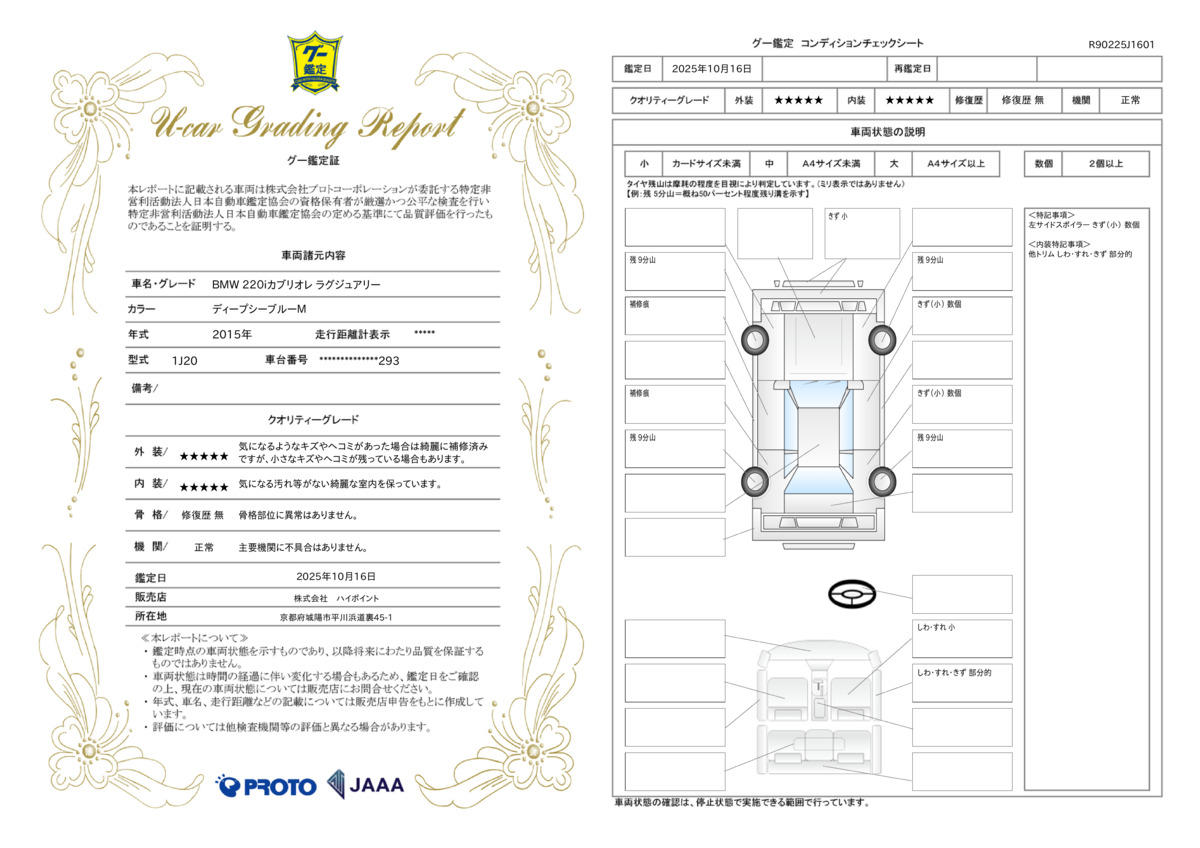 走行距離 | 1.1万km | 修復歴 | なし |