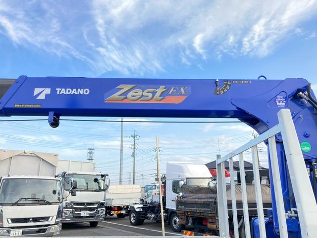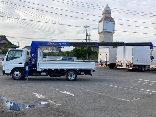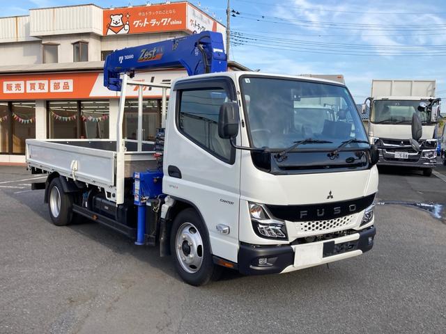三菱ふそう キャンターふそう 小型 クレーン付平ボディー 最大積載2000kg タダノ4段(2.63t吊)ZX264HRSA R5年8月製 ラジコン フックイン 警報型 セイコーラック2個 標準ロングボディー