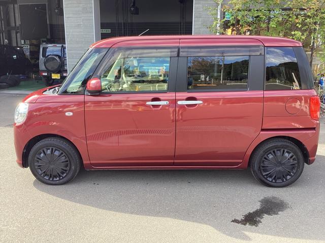 ダイハツ ムーヴキャンバスX SAII 4WD ファイアークォーツレッド 純正SDナビ フルセグTV ブルートゥース DVD再生 USB パノラマモニター スマートキー オプションエンジンスターター ドラレコ クリアランスソナー オートライト