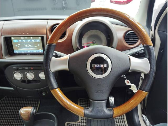momoステアリングとウッドパネル、ウッドシフトレバーがオシャレです。
