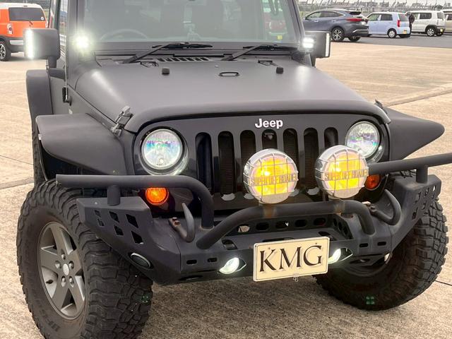 クライスラー・ジープ ジープ・ラングラースポーツ マッドブラックラッピング 社外バンパー 社外ステップ コールオブデューティールック リフトアップ ワークライト 35インチグッドリッチ 地デジBluetoothナビ バックカメラ クルーズコントロール