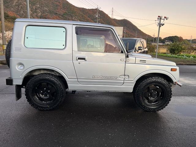 ランドベンチャー JA11-5型最終 整備記録簿20回分あります 圧縮圧力測定済 TベルトWポンプ カム クランクシール交換済 フロントステンBP アルミ塗装ジオランダー新品 ナルディーウッド 皮調シートカバー