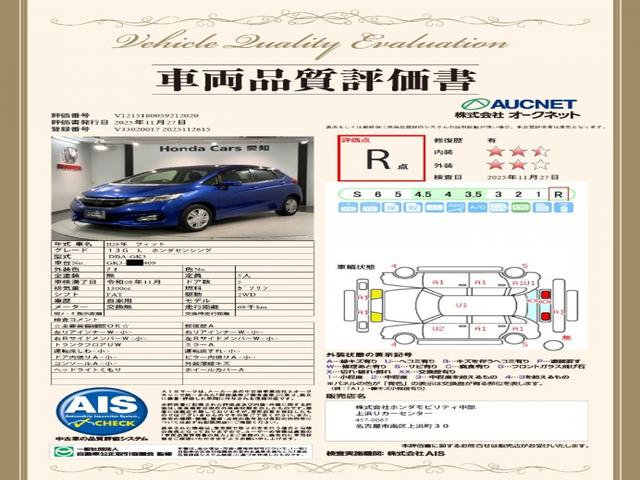 ホンダ フィット13G・Lホンダセンシング 1年保証 ワンオーナー ナビVXM-184VFi TV Rカメラ BTオ-ディオ DVD ETC LEDライト VSA クルコン フォグ スマートキー 盗難防止装置 整備記録簿 AAC Wエアバッグ