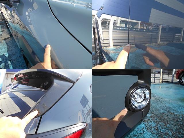 私が気になる箇所を画像に撮りました。右前ドア後方エクボ、右前フェンダーコキズ、社外プロテクター取付あり!!その他はコキズやエクボ程度!!板金修理も承りますので気になる方はご相談下さいね!!!