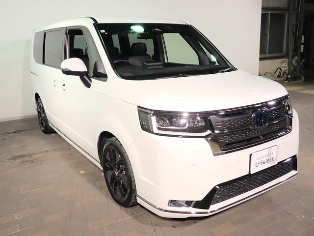 ホンダ ステップワゴンe:HEVスパーダ ギャザズ11.4インチナビ フルセグTV 純正天吊りモニター 全方位カメラ パーキングセンサー 両側電動スライドドア シートヒーター LEDオートライト ワンオーナー 禁煙車 大型ルーフコンソール