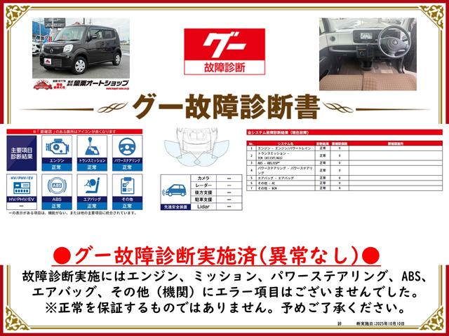 グー故障診断実施済み。エンジン・ミッション等、実施時には不具合となる箇所はございませんでした。必ず事前に内容をご確認下さい。※恒久的な正常を担保するものではありません。