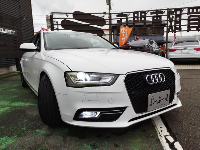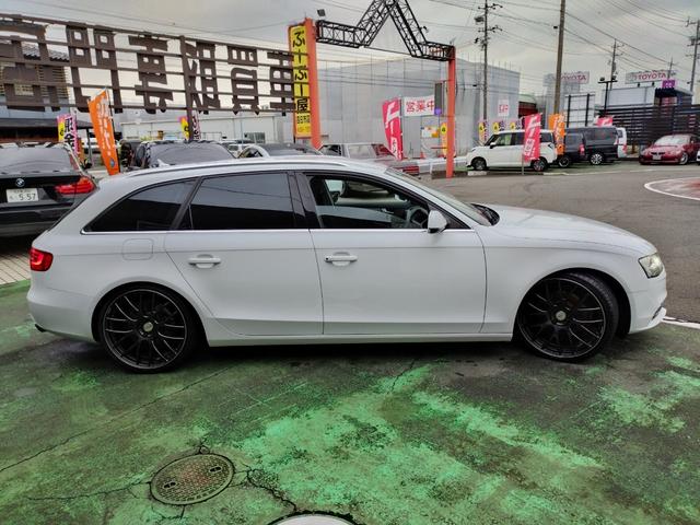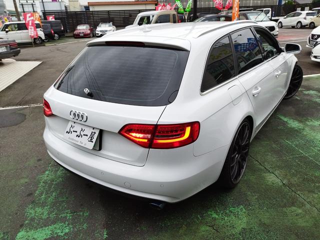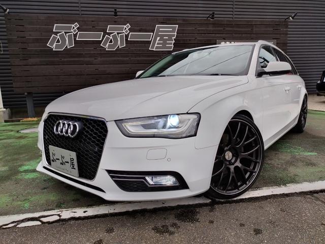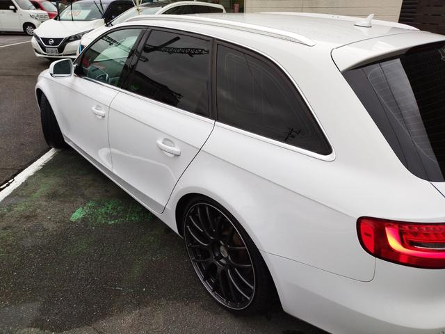 アウディ A4アバント2.0TFSI D車 ターボ 走行66874K 車高調 RAYS20アルミ Cソナ リアスモーク 4灯HID 黒シートカバパワーシート SDナビTVBモニETC ステリモ 前後ドラレコ ルーフレール スマートキ保証付