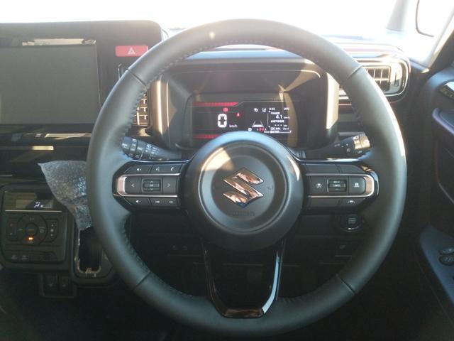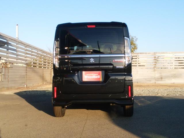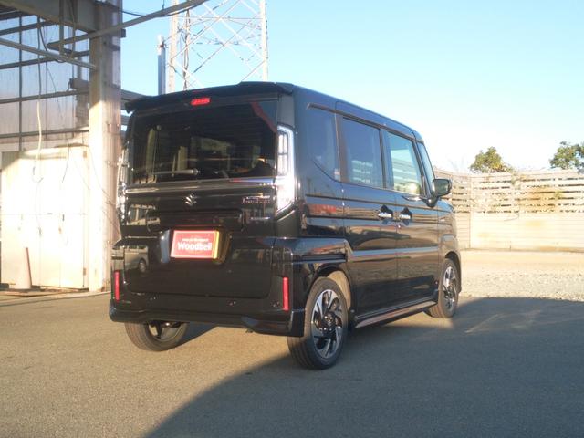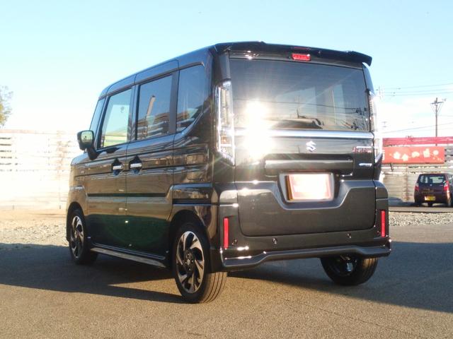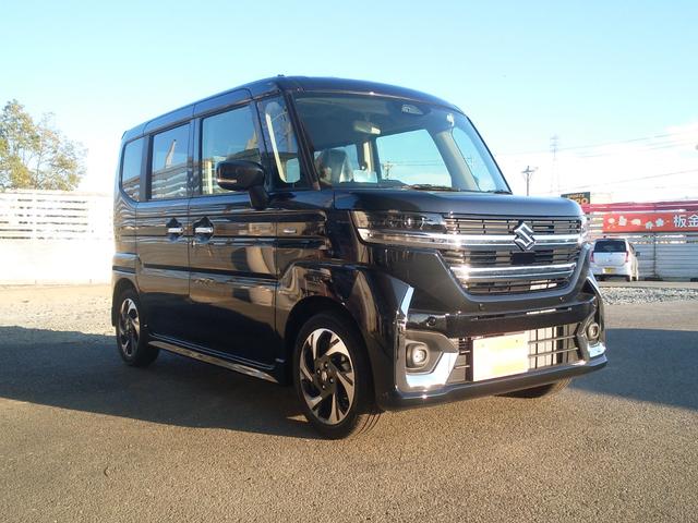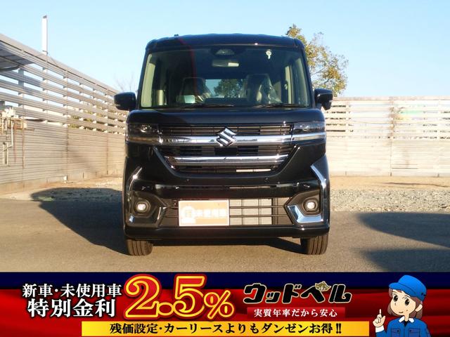 スズキ スペーシアカスタムハイブリッドXS 届出済未使用車 被害軽減ブレーキ 電動パーキングブレーキ LEDヘッドライト ステアリングヒーター シートバックテーブル マルチユースフラップ スリムサーキュレーター スマートキー