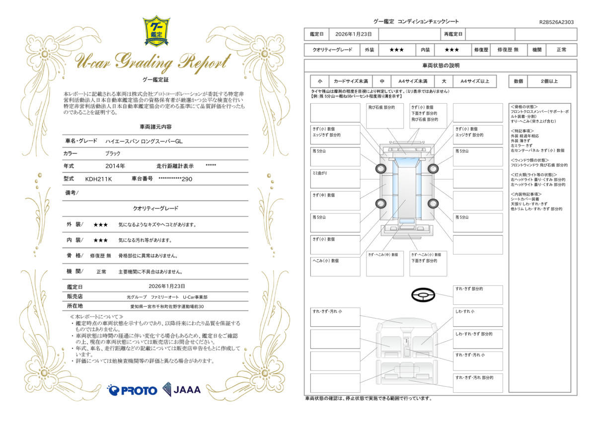 | 走行距離 | 14.2万km | 修復歴 | なし |