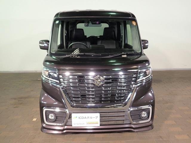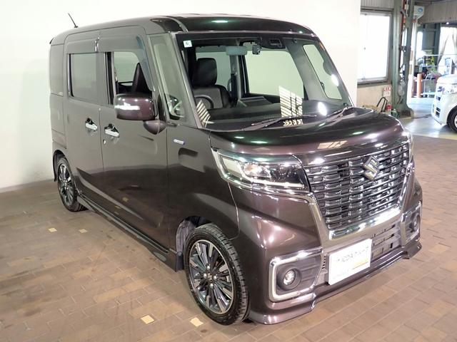 スズキ スペーシアカスタムハイブリッドXS 禁煙/社外ナビ/バックカメラ/ワンセグTV/CD・DVD/ETC/衝突軽減ブレーキ/インテリキー/LEDオートライト/クリアランスソナー/ハーフレザーシート/シートヒーター/両側パワスラ/純正15AW