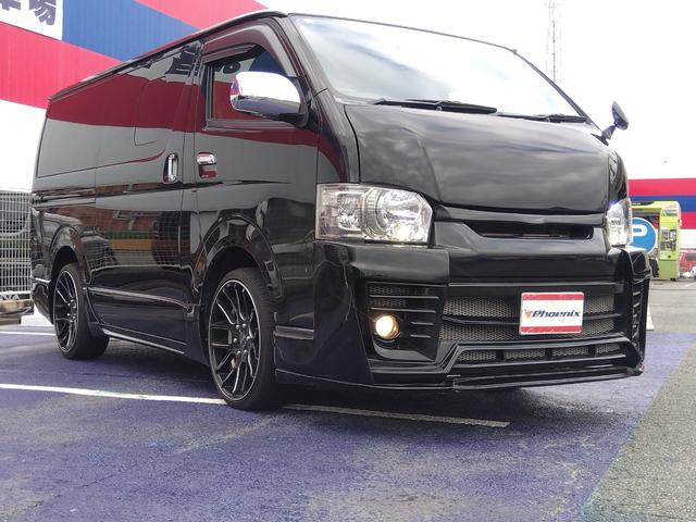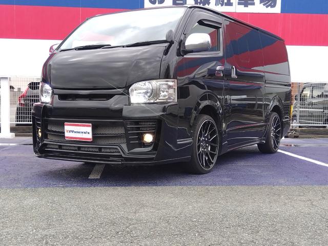 トヨタ ハイエースバンスーパーGL ダークプライム★ナビフルセグTV★アルパイン 10.1インチフリップダウンモニター★バックカメラ★LEDオートライト★ダイナスティエアロ★バッドフェイスボンネット★ワイドバイザー★ダイナスティ20インチAW★ハーフレザーシート★リアテーブル★
