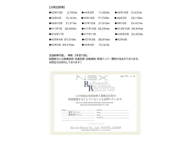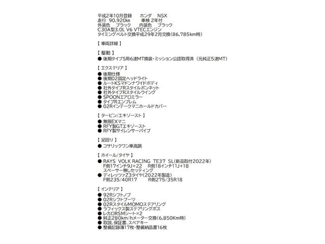 ホンダ NSXベースグレード 後期仕様 ルートKSマドンナワイドボディー 無限EXマニ RFY製GTエキゾースト&サイレンサーパイプ コリサックワン車高調 RAYS17&18インチ レカロシート 280kmメーター 整備記録17枚