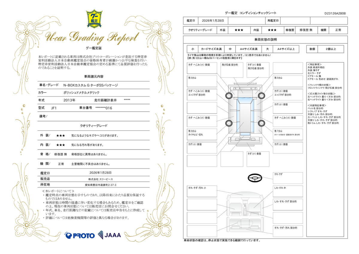 | 走行距離 | 7.7万km | 修復歴 | なし |